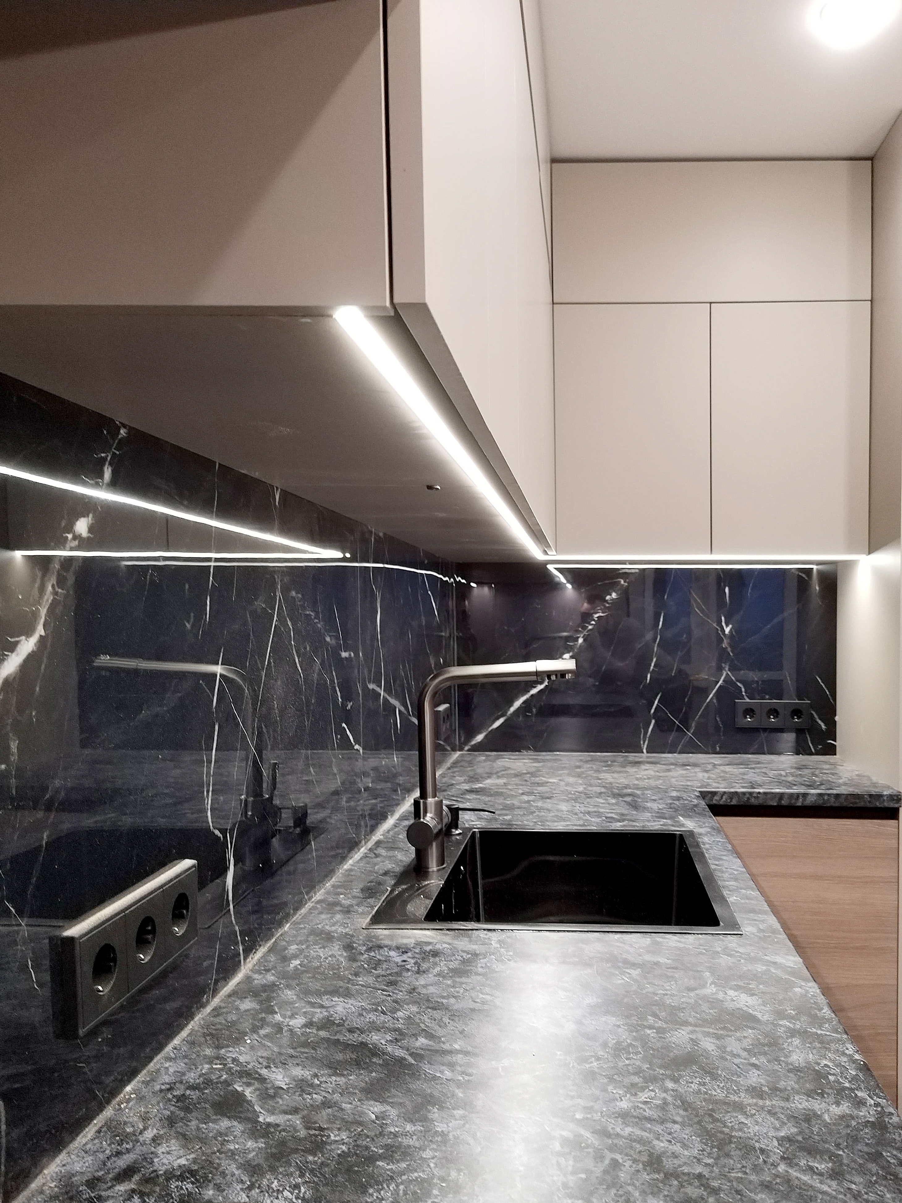 - Столешница кварц, подклейка мойки